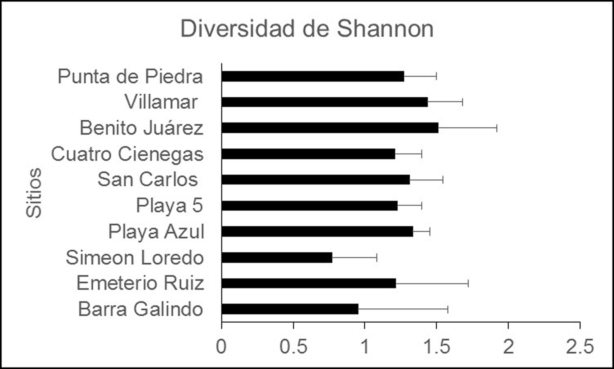 - Figura 2. Valores del índice de Shannon en las localidades de duna costera del municipio de Tuxpan, Veracruz.