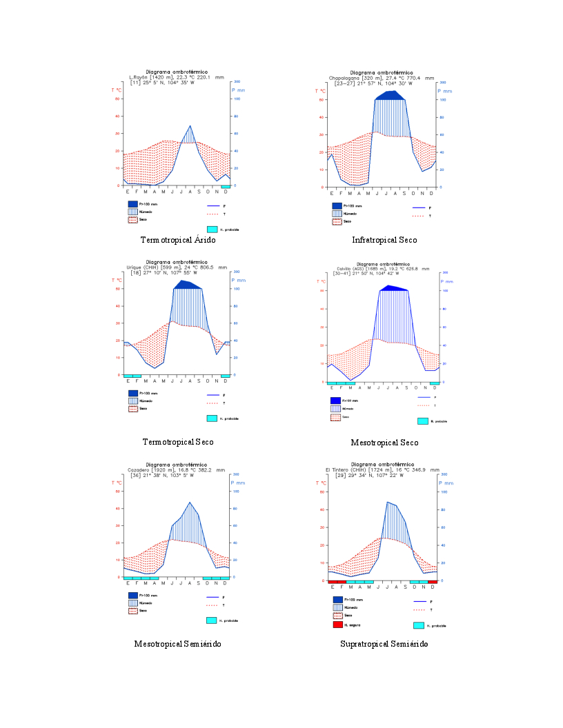 Peinado, M.; M.Á. Macías, F.M. Ocaña-Peinado, J.L. Aguirre y J. Delgadillo, 2011a, “Bioclimates and vegetation along the Pacific basin of Northwestern Mexico”. Plant Ecol., 212: 263-281.